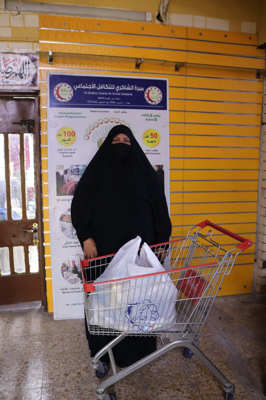 وبعد الإستلام أبدت المتعففة رغبتها بالحصول على "سلة غذائية" بقيمتها لإحتياج أسرتها لها حيث تم تأمينها وفق رغبتها من "محلات الشاكري الخيرية" المرتبطة بالفرع.