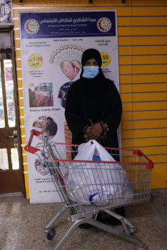 لأسرة المتعففة/ (ابتهاج.ه.ع) وحسب رغبتها بالحصول على "سلة غذائية" تم تأمينها من "محلات الشاكري الخيرية" المرتبطة بالفرع.
