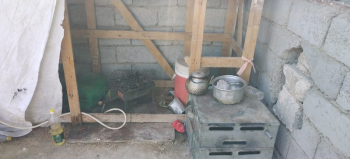 يفتقر المنزل للعديد من الإحتياجات المعيشية الضرورية، سقف المنزل متهالك مما أضطرهم لتغطيته بغطاء بلاستيكي ليقيهم المطر.
