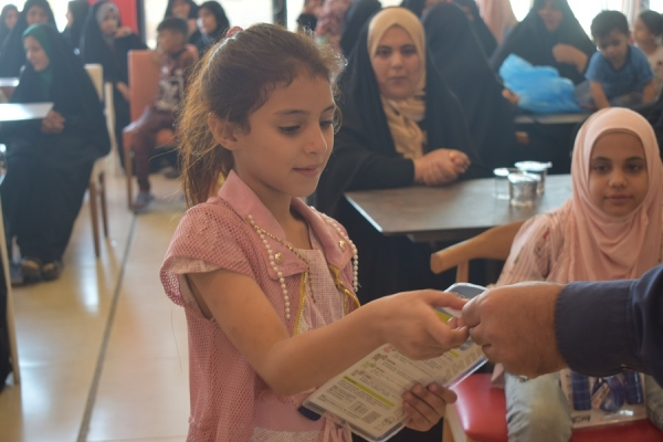 فرع مدينة الصدر : تسليم الكفالة الشهرية لشهر اب من السيدة سهى شبر للايتام فريحة ماهر واخوتها