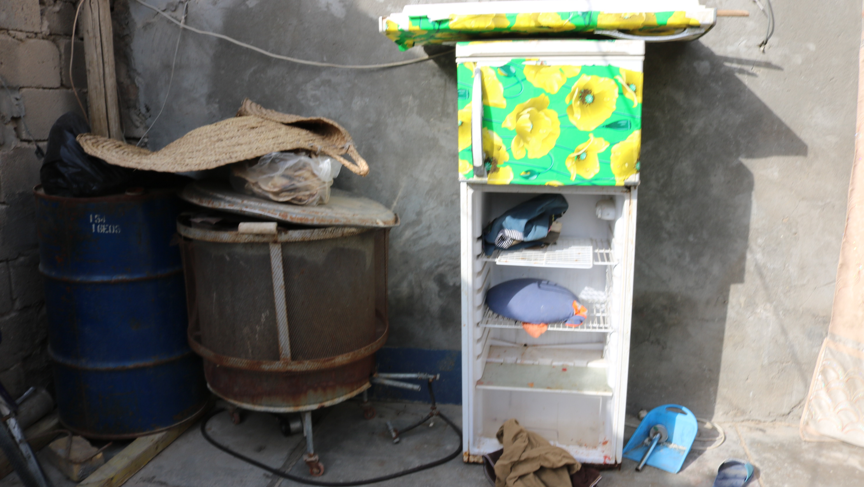 This family lives in a slum. The roof of the house is made of corrugated iron, and the home lacks in many basic essentials such as a refrigerator and an air cooler.